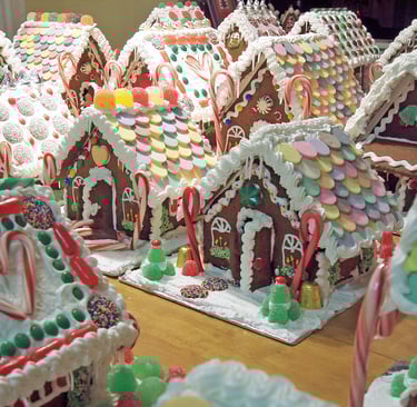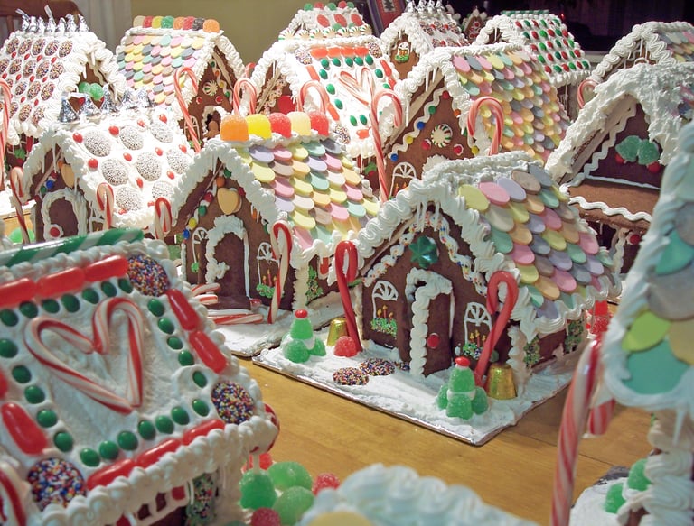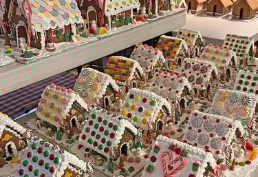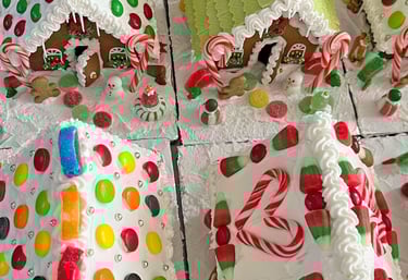Handcrafted gingerbread houses made with love, continuing a Morgan family tradition for over 47 years this holiday season.